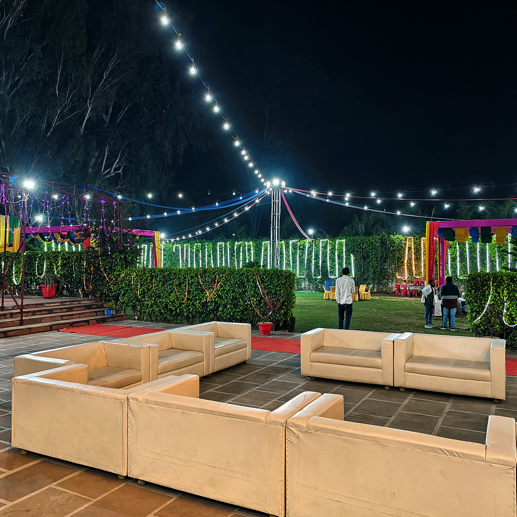 Shri Raj Paradise is gives you a luxurious and stylish farmhouse that has a unique infrastructure with eye-catching interiors and architecture. Our attractive farmhouse is surrounded by some beautiful locations around. It has the best view to catch and a great place for a family outing and gets together. Shri Raj Paradise takes care of every minute thing to deliver a glitch-free event. If you are looking for an affordable venue then Shri Raj Paradise is the best venue for you. We have a team that is cordially welcoming and amicable in assisting their guests through the successful conduct of events we have planned in their venue.